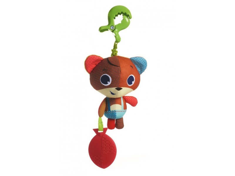 Měkká textilní hračka Tiny Love v podobě milého medvídka chrastí a šustí a po natažení vibruje. Součástí hračky je i kousátko, které pomáhá ulevit citlivým dásním dítěte při prořezávání prvních zoubků.