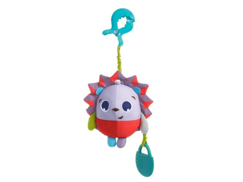 Měkká textilní hračka Tiny Love v podobě barevného ježečka chrastí a šustí a skáče na pružné šňůrce. Součástí hračky je i kousátko, které pomáhá ulevit citlivým dásním dítěte při prořezávání prvních zoubků.