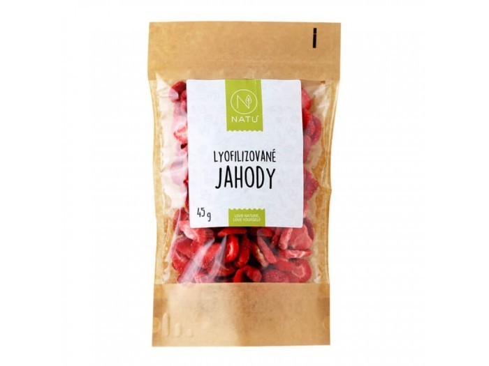 Lyofilizované jahody si díky procesu sušení mrazem uchovávají většinu původních vlastností, jako je vůně, chuť, barva a obsah živin. Jahody jsou bohatým zdrojem vitamínu C, který podporuje naši obranyschopnost. V jahodách najdeme i provitamín A, B (B 1, B 2, B 5, B 6) a E.