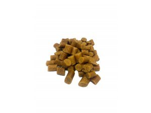 Tyčinka kuřecí s lososem sekaná na malé kousky je vhodná pro pejsky i kočky jako odměna.