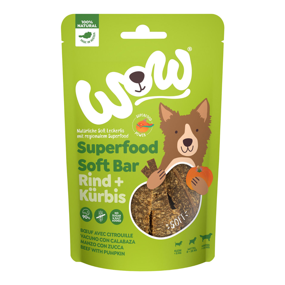 WOW pamlsky Hovězí s dýní Superfood měkké proužky 150g