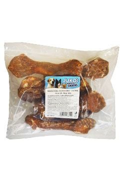 Doplňkové krmivo pro psy.Pamlsek lisovaný z kůže, obalený sušeným kachním masem.Kousáním se posílí žvýkací svaly, zároveň vyčistí zuby i dásně. Lze použít jako součást dentální hygieny.Složení: 74% surová kůže, 22% čerstvé kachní prsa, 1,5% škrob, 1% glycerin, 1% sorbitol, chlorid sodný...