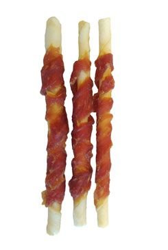 Pamlsek lisovaný z kůže, obalený sušeným kachním masem.Kousáním se posílí žvýkací svaly, zároveň vyčistí zuby i dásně. Lze použít jako součást dentální hygieny.Složení: Surová kůže, čerstvé kachní maso, kukuřičný škrob, glycerin, sorbitol, chlorid sodnýAnalytické složky: Hrubý protein 30%, Hrubý...