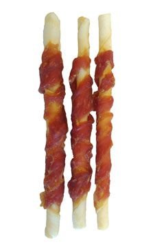 Pamlsek lisovaný z kůže, obalený sušeným kachním masem.Kousáním se posílí žvýkací svaly, zároveň vyčistí zuby i dásně. Lze použít jako součást dentální hygieny.Složení: Surová kůže, čerstvé kachní maso, kukuřičný škrob, glycerin, sorbitol, chlorid sodnýAnalytické složky: Hrubý protein 30%, Hrubý...