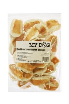 Popis: botička z bílé buvolí kůže o velikosti 7,5cm obalená kuřecím masem. Pro psy.Složení: buvolí kůže 72%, kuřecí maso 16%, škrob 12%. prečítať celé
