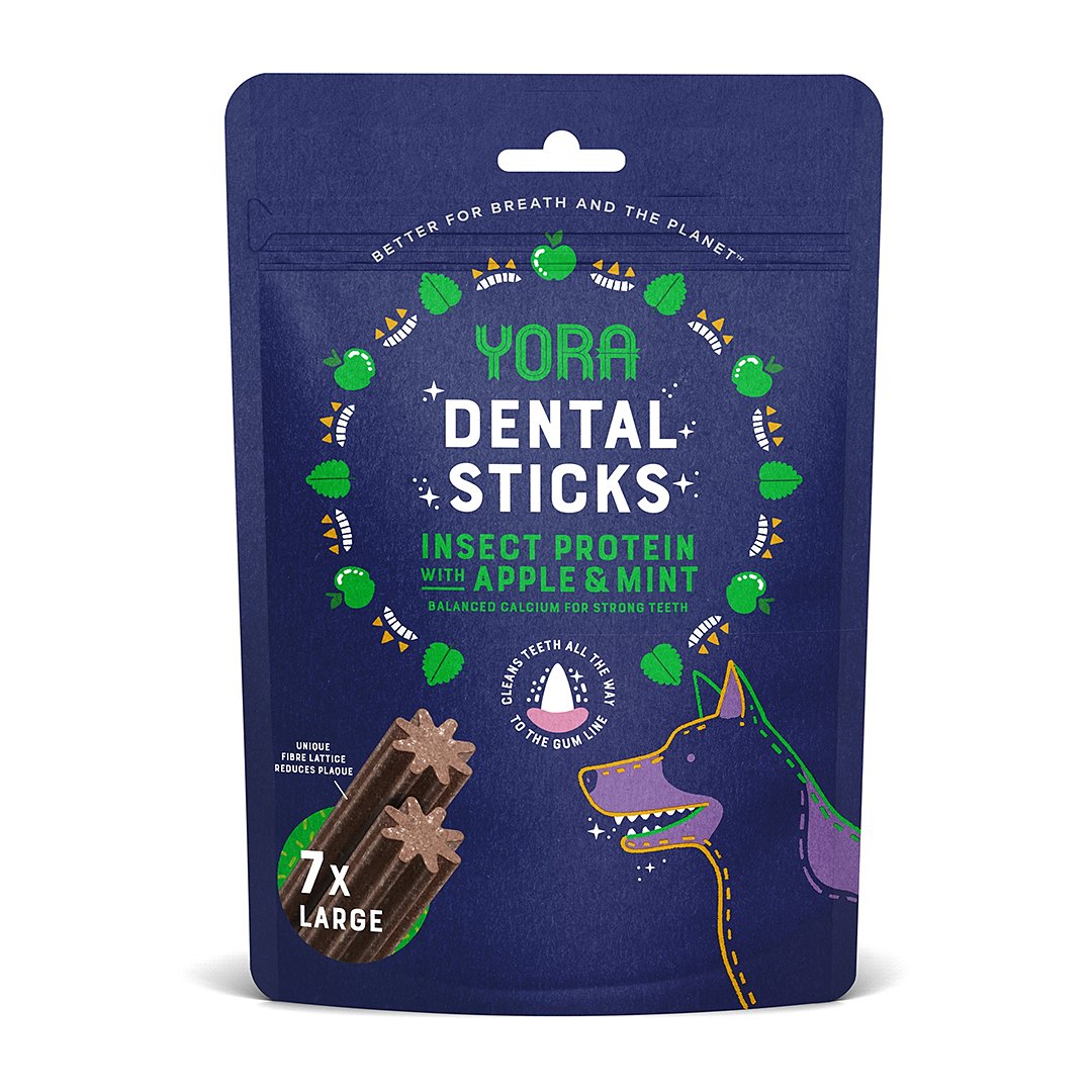 YORA Dog dentální tyčinky z hmyzu jablko a máta 270g Large