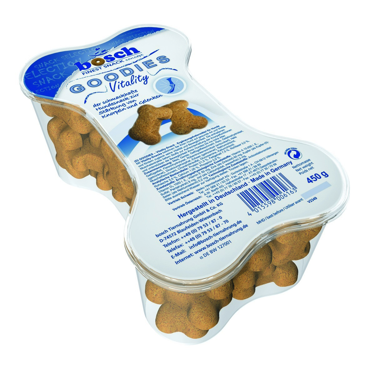 Bosch Goodies Vitality jsou lahodné psí pamlsky, které působí pozitivně na zdraví chrupavek a kloubů. Díky obsaženým extraktům z mušlí jsou dodávány cenné látky, které podporují funkci chrupavek a dobrou pohyblivost psa až do jeho vysokého věku.Bosch Goodies Vitality:- lahodný snack pro psy...