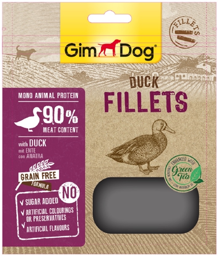 GIMDOG Superfood Duck Fillets se zelenym cajem 60g