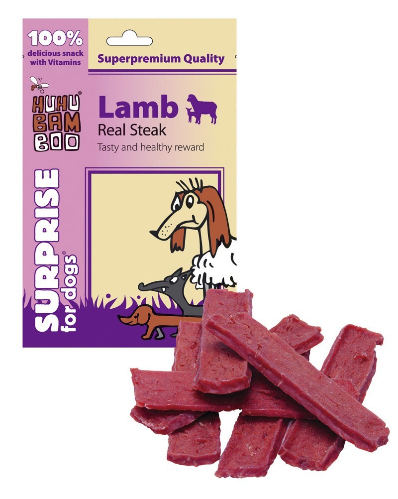 Pravý jehněčí steak- přírodní masová pochoutka pro psy Krmný návod: Podávejte jako odměnu při tréninku. Zajistěte dostatek čerstvé vody.Složení: Jehněčí maso, rýžová mouka, chlorid sodný, sacharózaAnalytické složky: protein 45%, vlhkost 25%, obsah tuků 18%, vláknina 4%, hrubý popel...