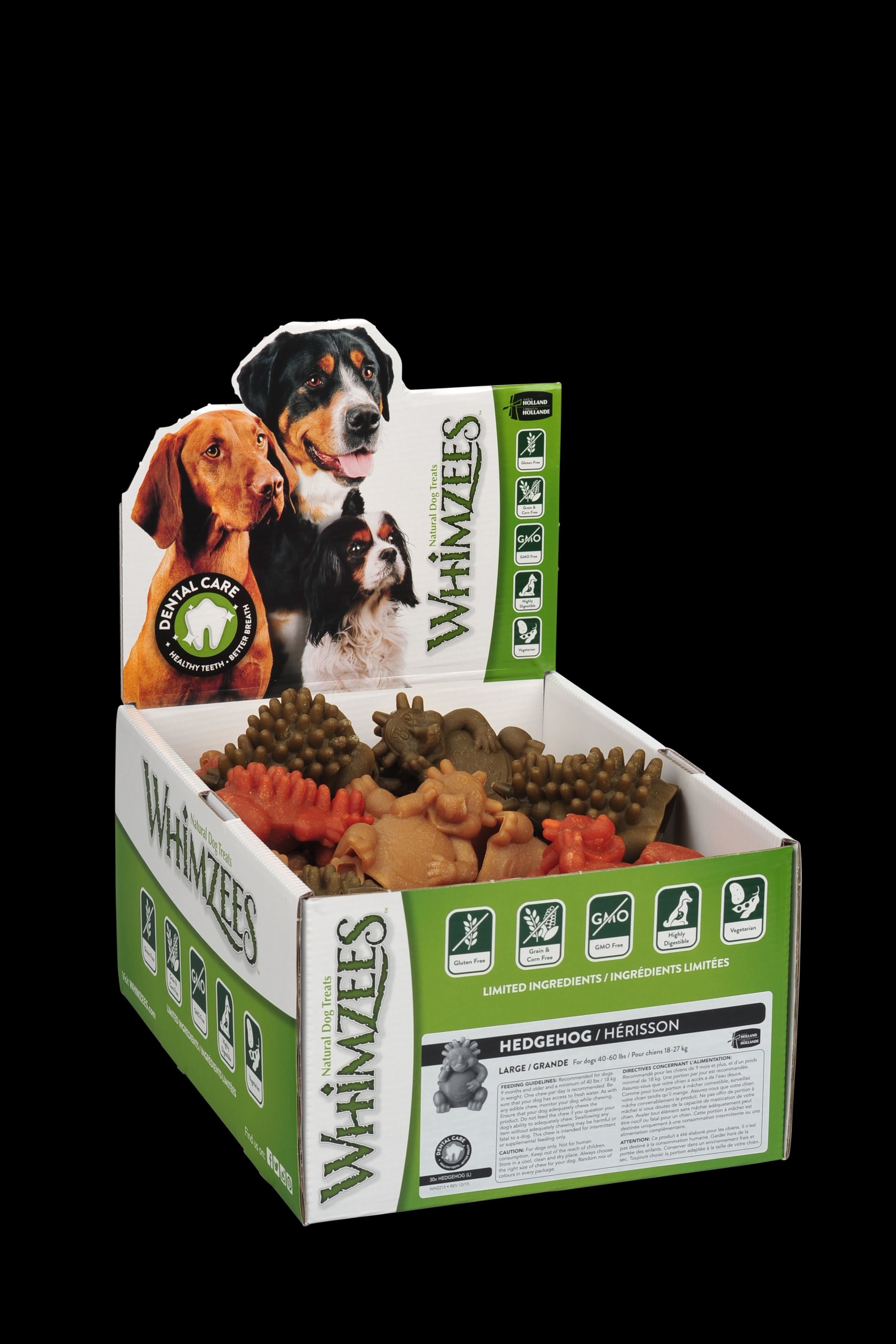 WHIMZ Dental ježko L 60 g, 30 ks je ideálna pochúťka pre vašich domácich miláčikov, ktorá podporuje ich dentálnu hygienu a zároveň poteší svojou chuťou.