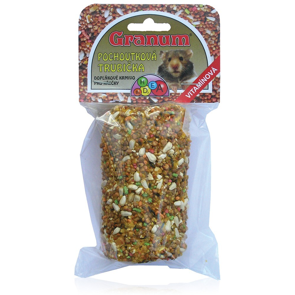 Vitamínová trubička pro křečkyPochoutková trubička pro křečky je hračkou a pamlskem zároveň.- chutná zábava pro malé hlodavce- zrníčka si hlodavci musí z trubičky vyloupnout jako v přírodě- základ trubičky je poživatelný a vyrobený ze zdravotně nezávadných surovinSložení:obiloviny, semena,...