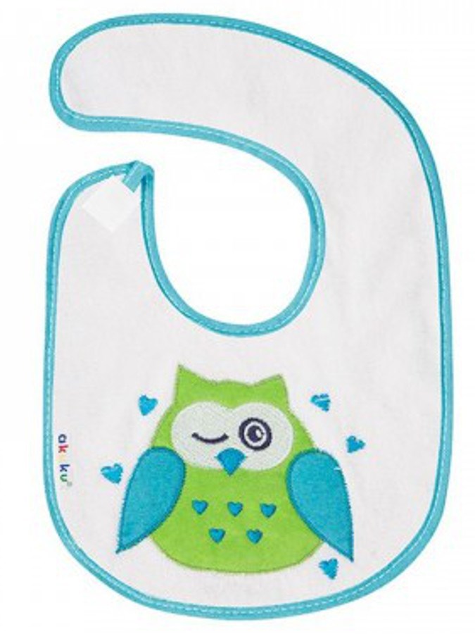 Barevný dětský froté bryndáček Akuku s veselým obrázkem. Bryndáček má dvě vrstvy. Přední bavlněná strana má veselý obrázek a jednobarevné lemování. Zadní strana je z nepromokavého PVC. Zapínání vzadu na suchý zip. Dětský bryndáček chrání oblečení miminka před znečištěním při jídle a pití....