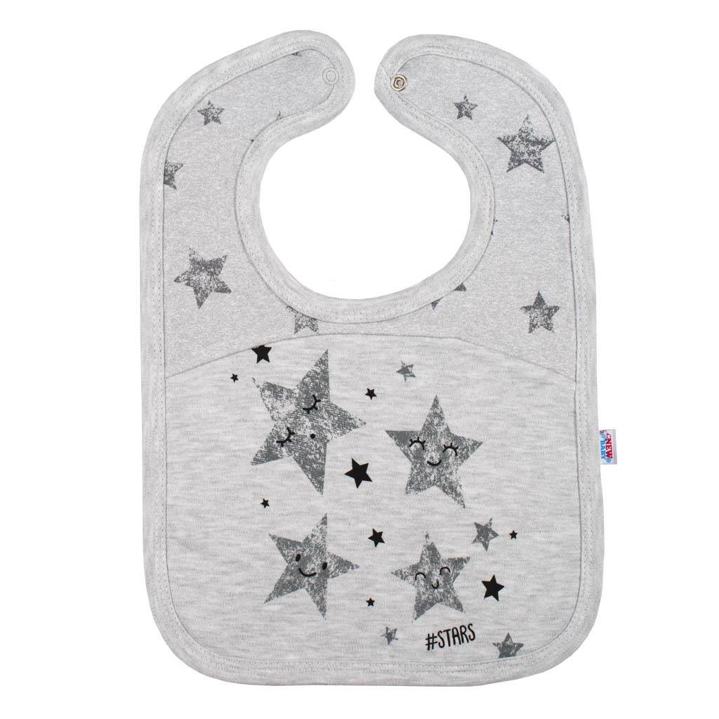 Kojenecký bryndák české značky New Baby Stars pro miminka. Bryndáček je jednobarevný a zdobený hvězdičkou. Zapínání na cvoček. Je měkký, praktický a chrání oblečení miminka před ušpiněním. Složení: 100% bavlna. prečítať celé