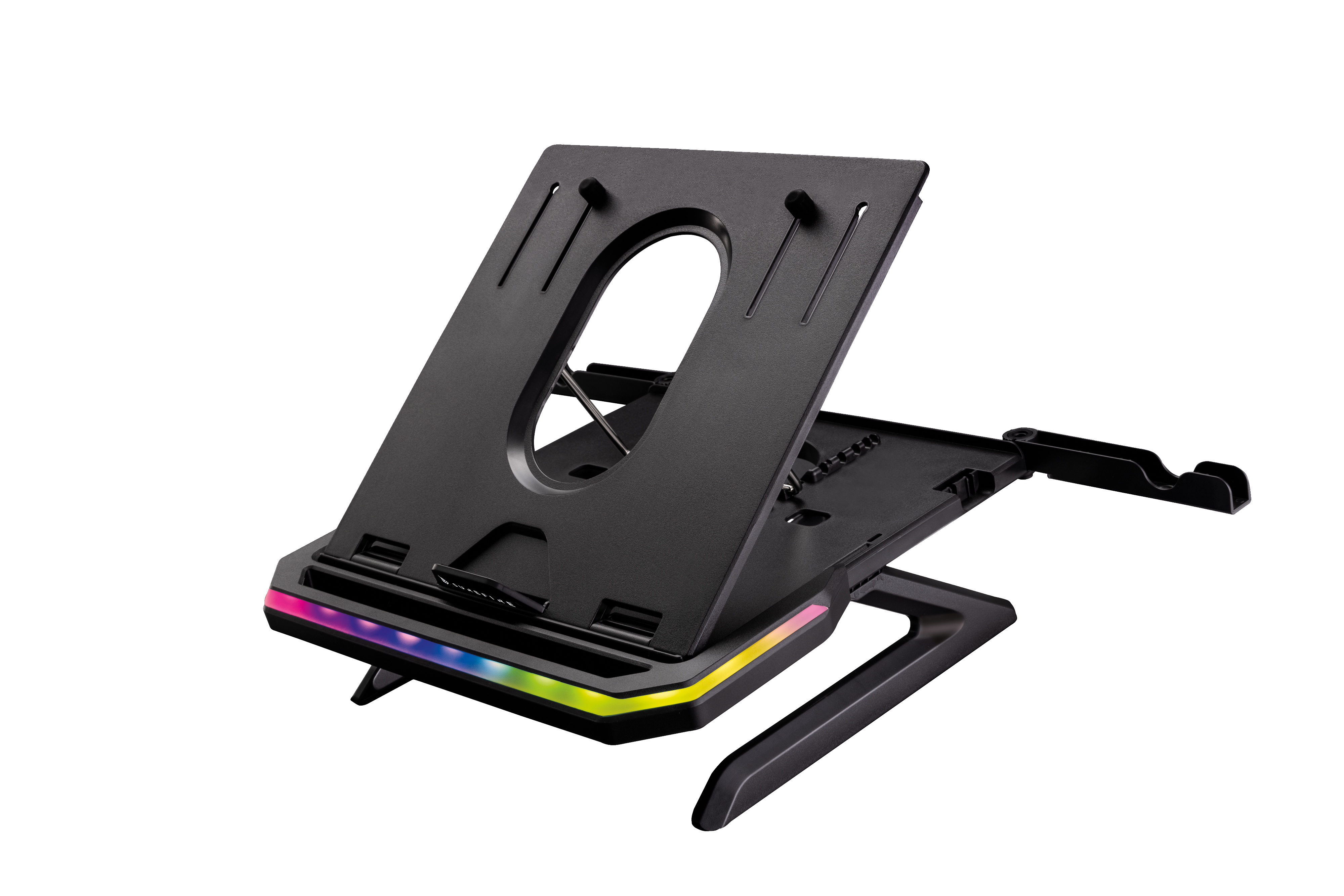 PRODUCT HIGHLIGHTSPro notebooky o velikosti až 17,3" a hmotnosti 10 kg (22 lb).9 nastavitelných pozorovacích úhlů2 úrovně výškyVětrání pro lepší proudění vzduchu a snížení provozní teplotyRGB LED podsvícení – 6 režimů2 skládací držáky telefonuPřenosný a skládací – snadné skladování a...