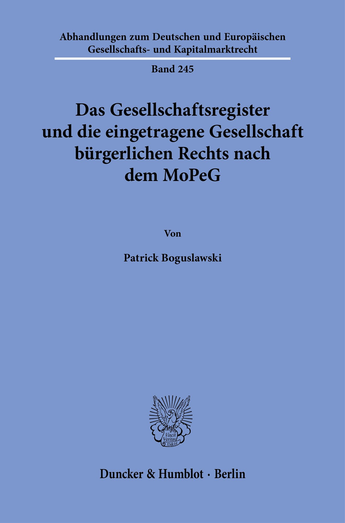 Das Gesellschaftsregister und die eingetragene Gesellschaft bürgerlichen Rechts nach dem MoPeG (německy)