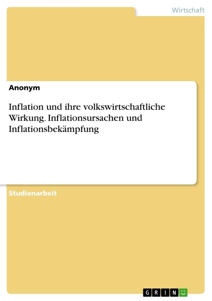 Inflation und ihre volkswirtschaftliche Wirkung. Inflationsursachen und Inflationsbekämpfung (německy)