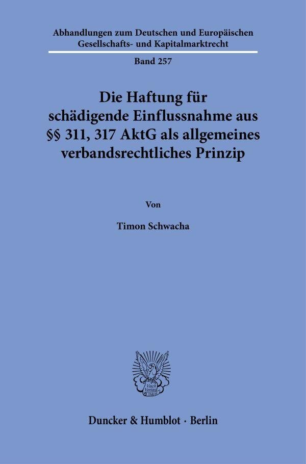 Die Haftung für schädigende Einflussnahme aus §§ 311, 317 AktG als allgemeines verbandsrechtliches Prinzip (německy)