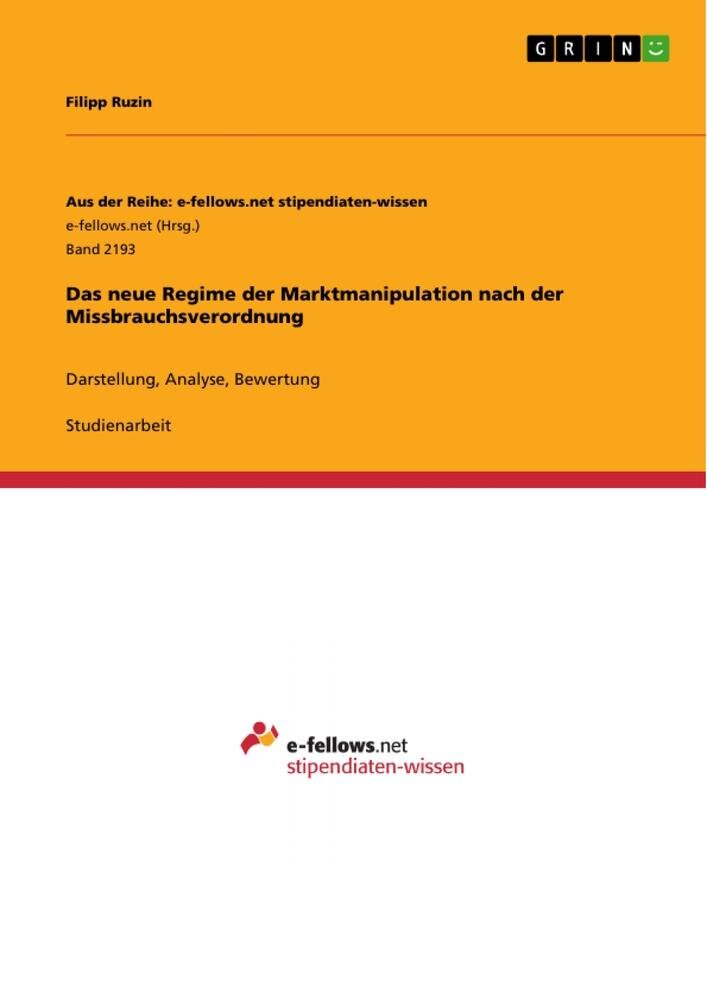 Das neue Regime der Marktmanipulation nach der Missbrauchsverordnung (německy)