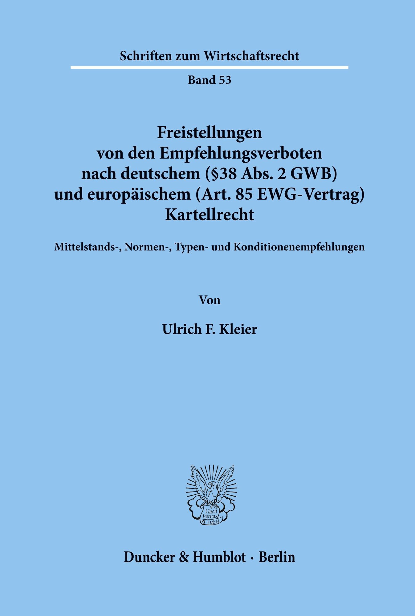 Freistellungen von den Empfehlungsverboten nach deutschem (§38 Abs. 2 GWB) und europäischem (Art.85 EWG-Vertrag) Kartellrecht. (německy)