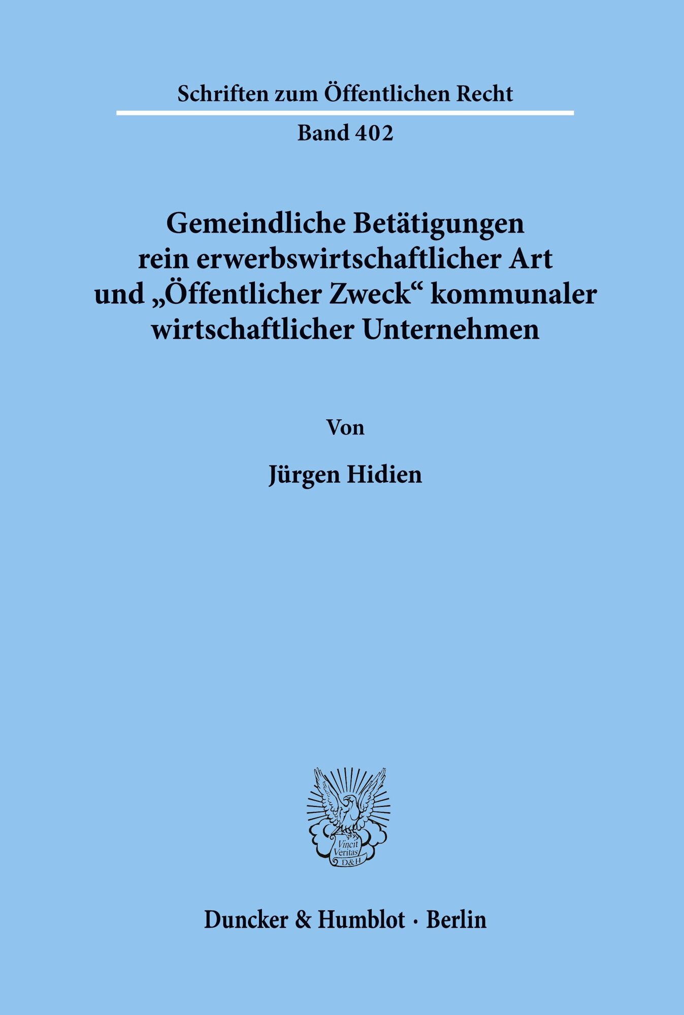 Gemeindliche Betätigungen rein erwerbswirtschaftlicher Art und "Öffentlicher Zweck« kommunaler wirtschaftlicher Unternehmen. (německy)