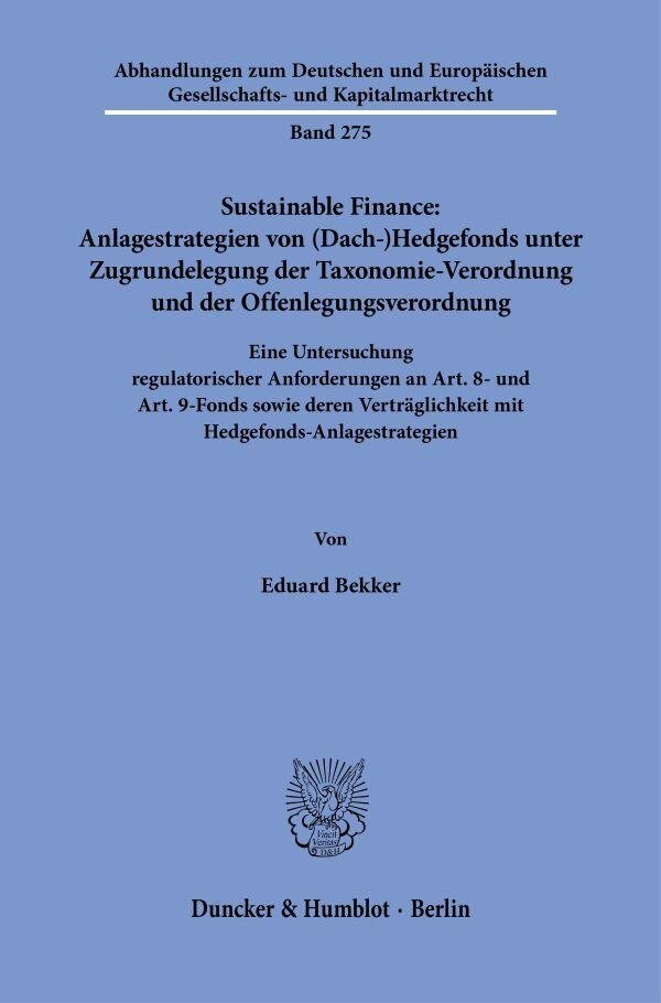 Sustainable Finance: Anlagestrategien von (Dach-)Hedgefonds unter Zugrundelegung der Taxonomie-Verordnung und der Offenlegungsve (německy)