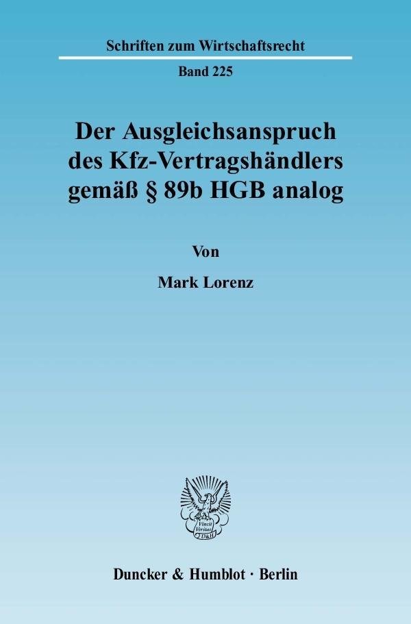Der Ausgleichsanspruch des Kfz-Vertragshändlers gemäß § 89b HGB analog (německy)