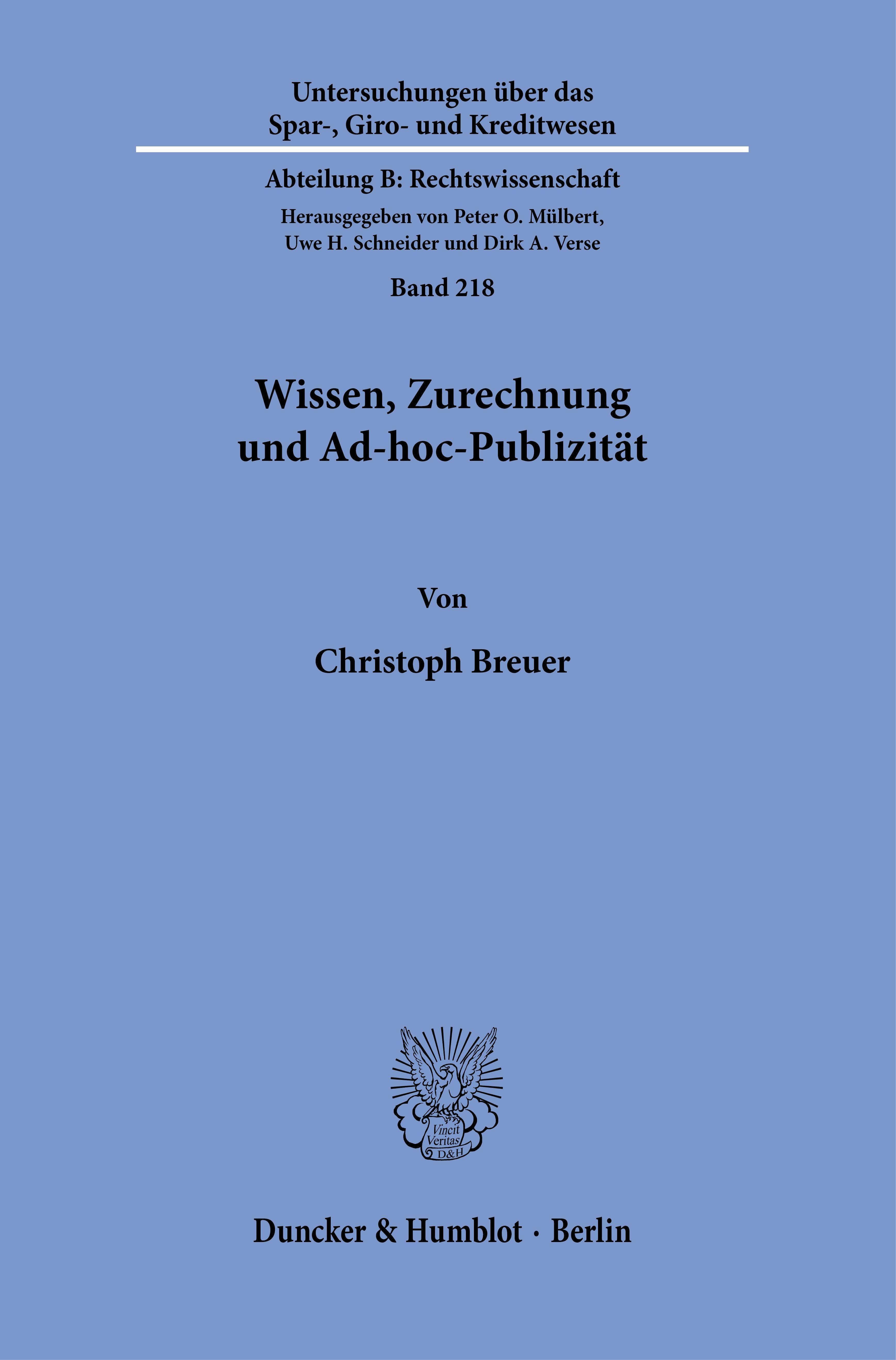 Wissen, Zurechnung und Ad-hoc-Publizität. (německy)