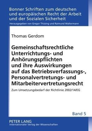 Gemeinschaftsrechtliche Unterrichtungs- und Anhörungspflichten und ihre Auswirkungen auf das Betriebsverfassungs-, Personalvertr (německy)