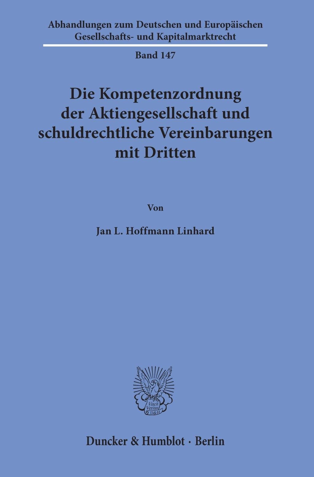 Die Kompetenzordnung der Aktiengesellschaft und schuldrechtliche Vereinbarungen mit Dritten. (německy)