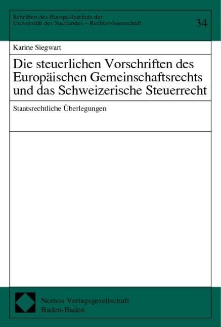 Die steuerlichen Vorschriften des Europäischen Gemeinschaftsrechts und das Schweizerische Steuerrecht (německy)