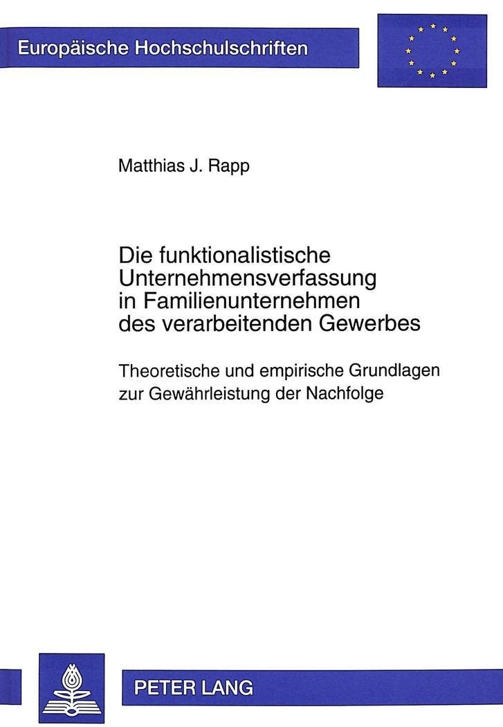 Die funktionalistische Unternehmensverfassung in Familienunternehmen des verarbeitenden Gewerbes (německy)