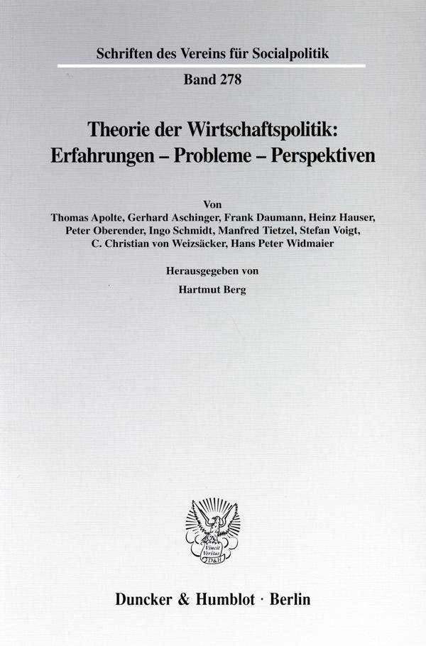 Theorie der Wirtschaftspolitik: Erfahrungen - Probleme - Perspektiven (německy)