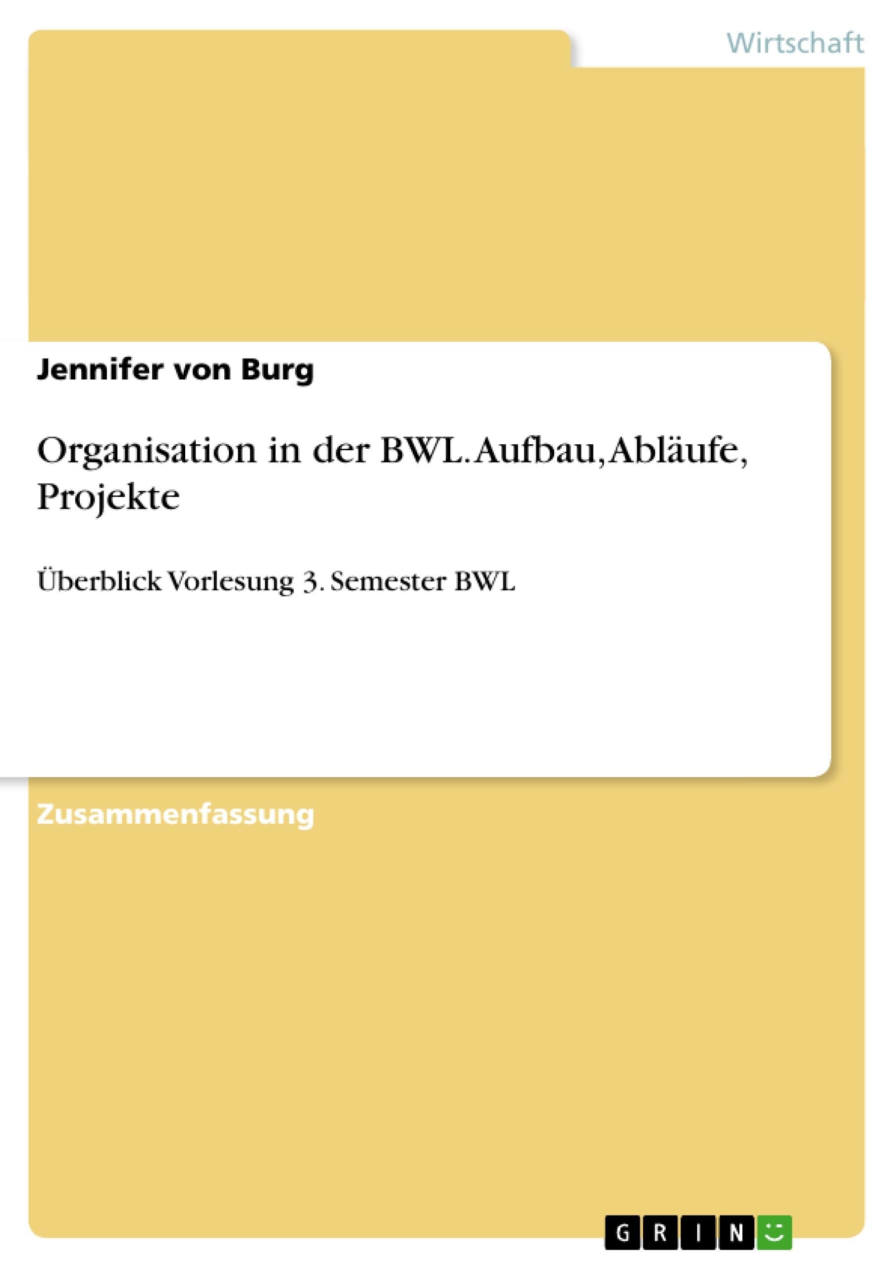 Organisation in der BWL. Aufbau, Abläufe, Projekte (německy)