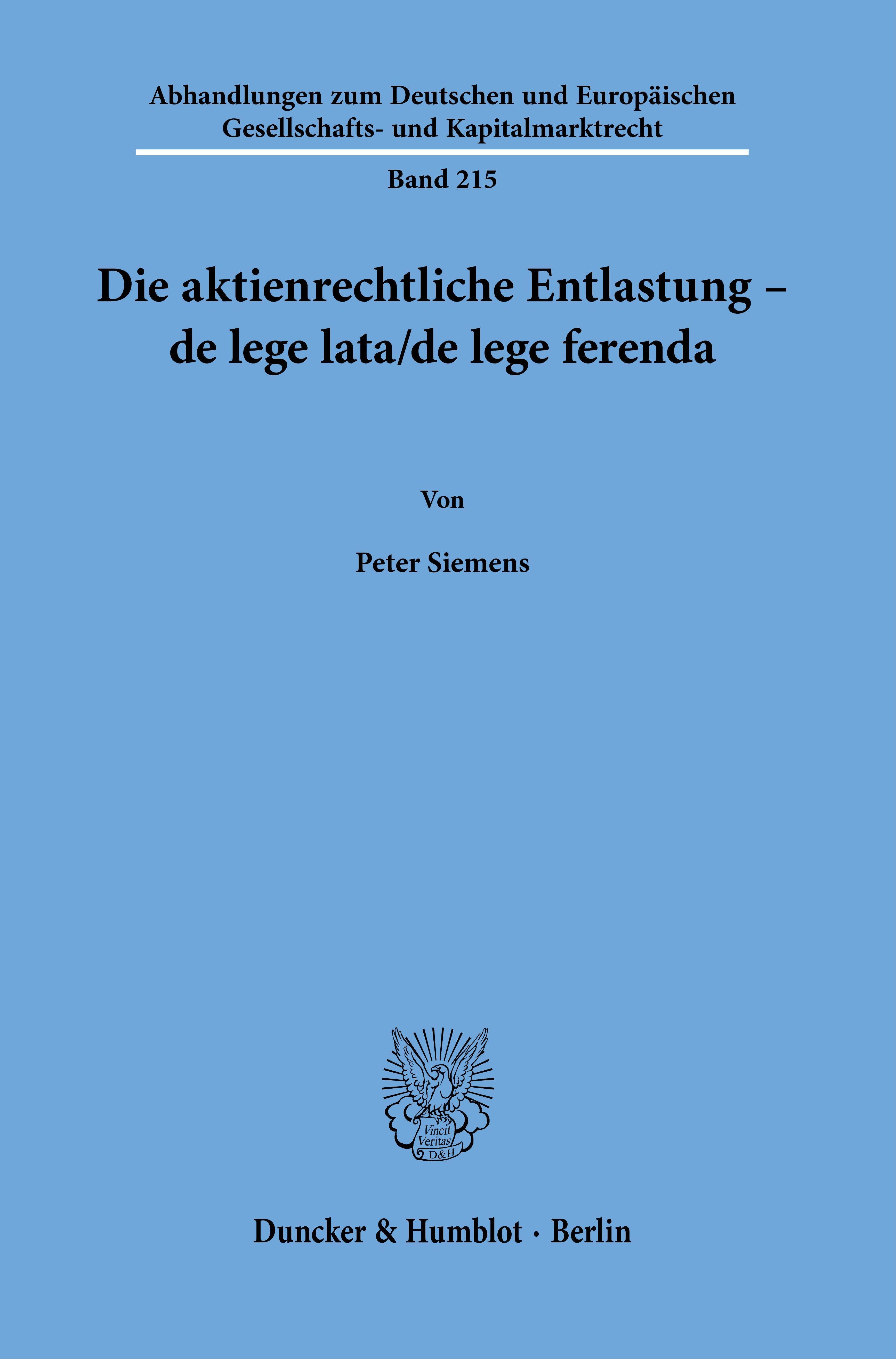 Die aktienrechtliche Entlastung - de lege lata/de lege ferenda. (německy)