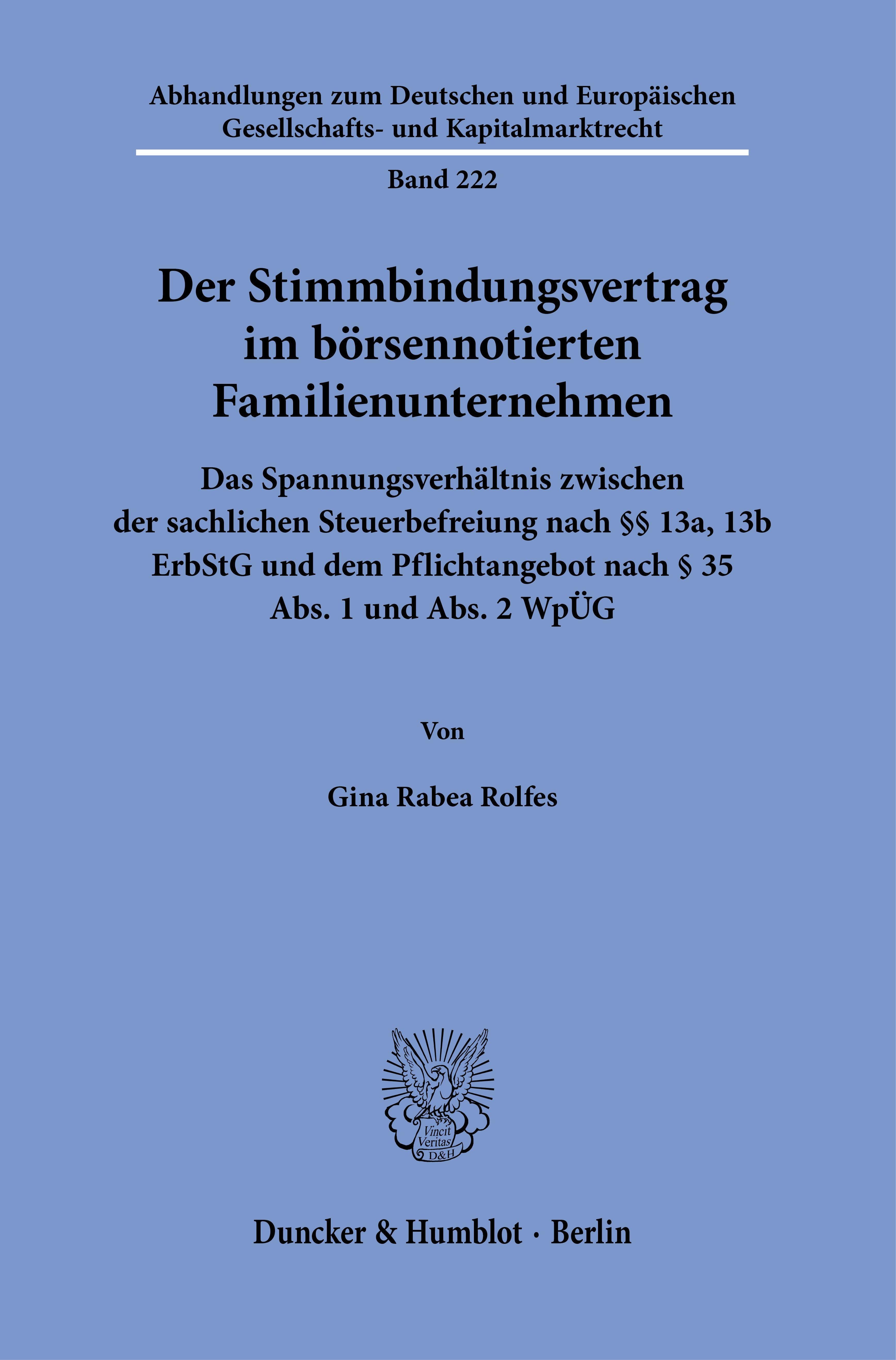 Der Stimmbindungsvertrag im börsennotierten Familienunternehmen (německy)