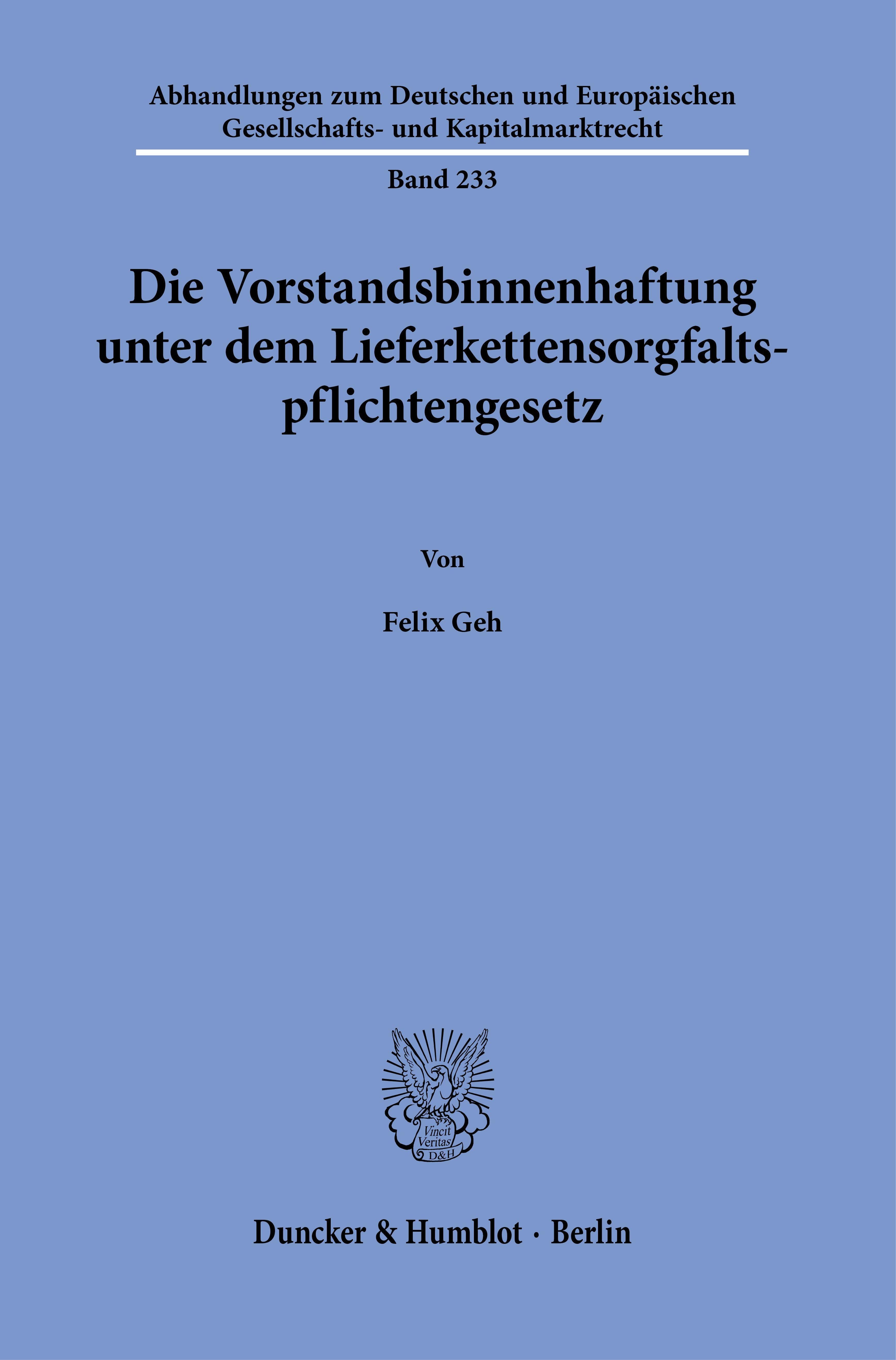 Die Vorstandsbinnenhaftung unter dem Lieferkettensorgfaltspflichtengesetz (německy)