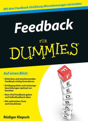 U¨ ber den Autor 17§Einführung 19§§U¨ ber dieses Buch 20§§Wie Sie dieses Buch benutzen 21§§Konventionen in diesem Buch 22§§T¨ orichte Annahmen ¨ uber die Leser 22§§Wie dieses Buch aufgebaut ist 23§§Teil I: Grundlagen zum Feedback 23§§Teil II: Feedback 'von oben nach unten': Chef beurteilt...