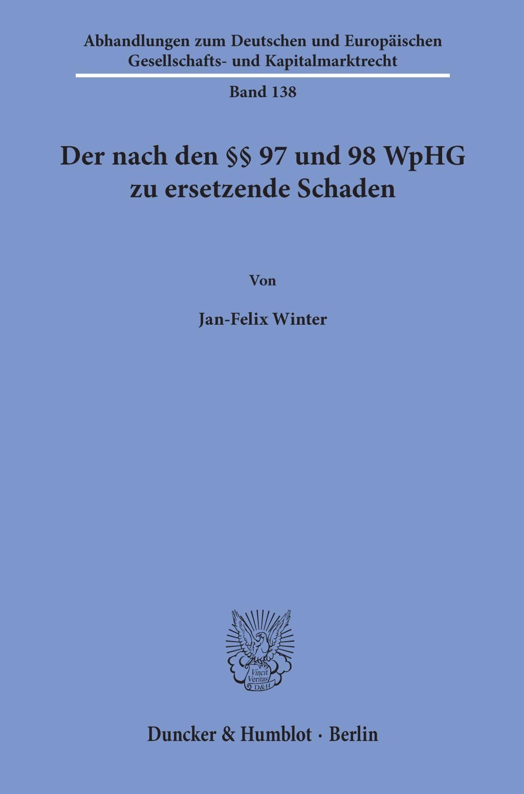 Der nach den §§ 97 und 98 WpHG zu ersetzende Schaden. (německy)