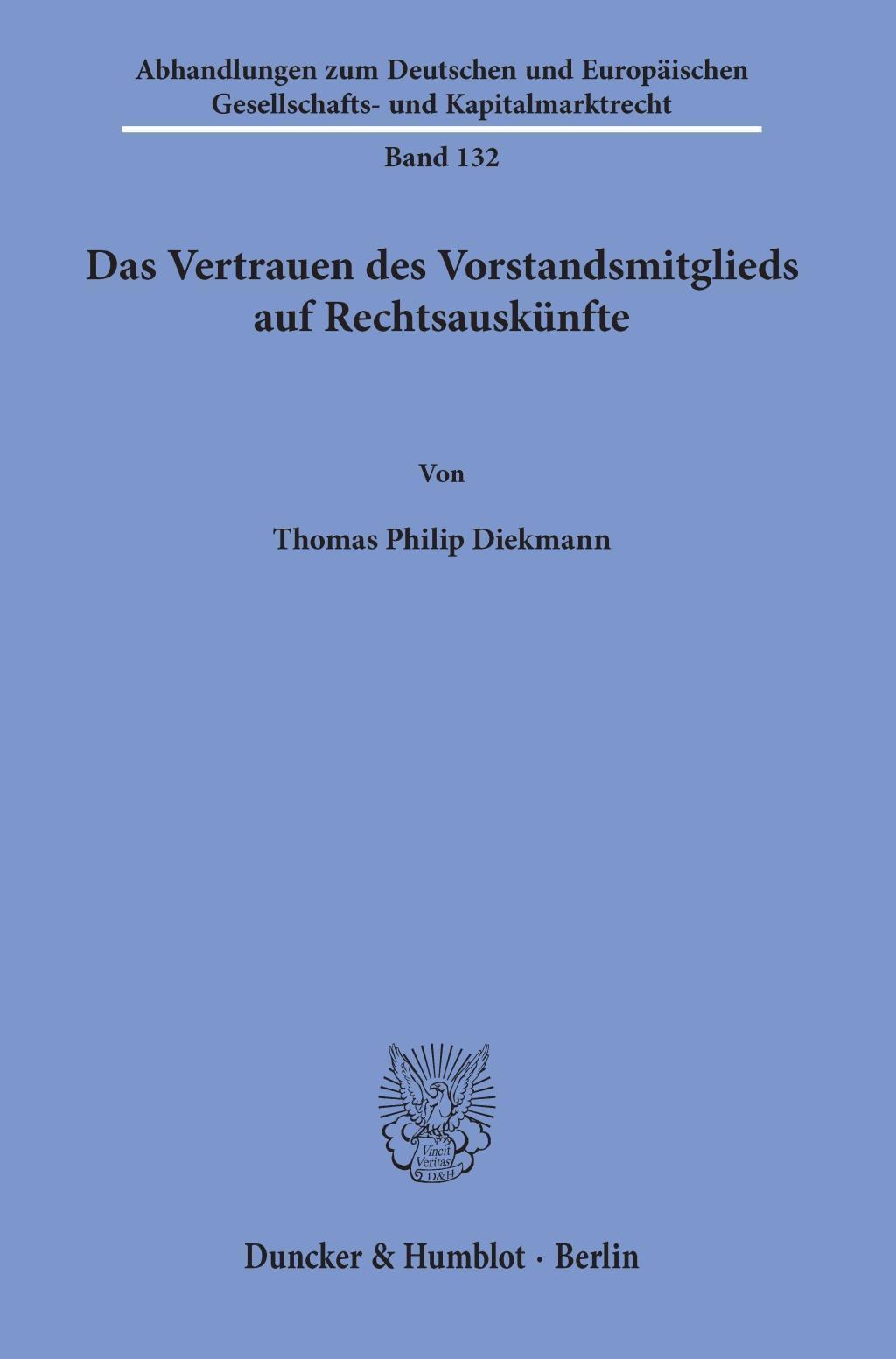 Das Vertrauen des Vorstandsmitglieds auf Rechtsauskünfte (německy)