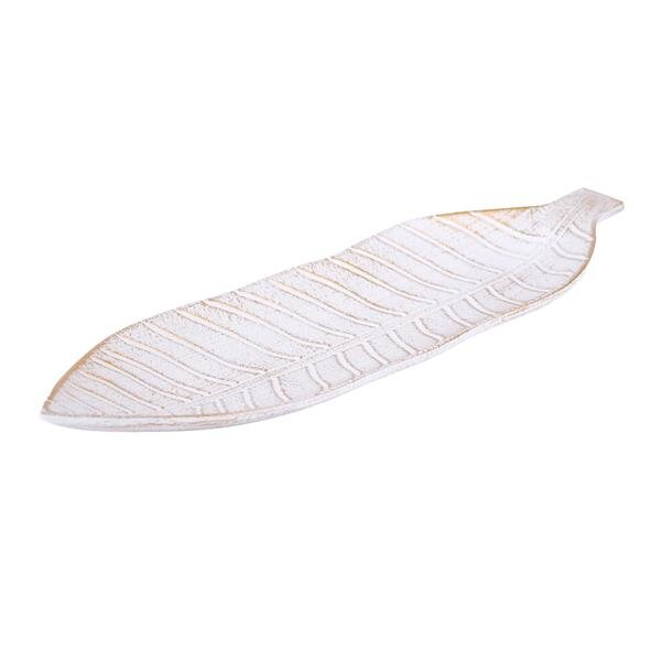 PODNOS TVAR LISTU 41X12X3,5CM DŘEVO ZLATÁ/BÍLÁ