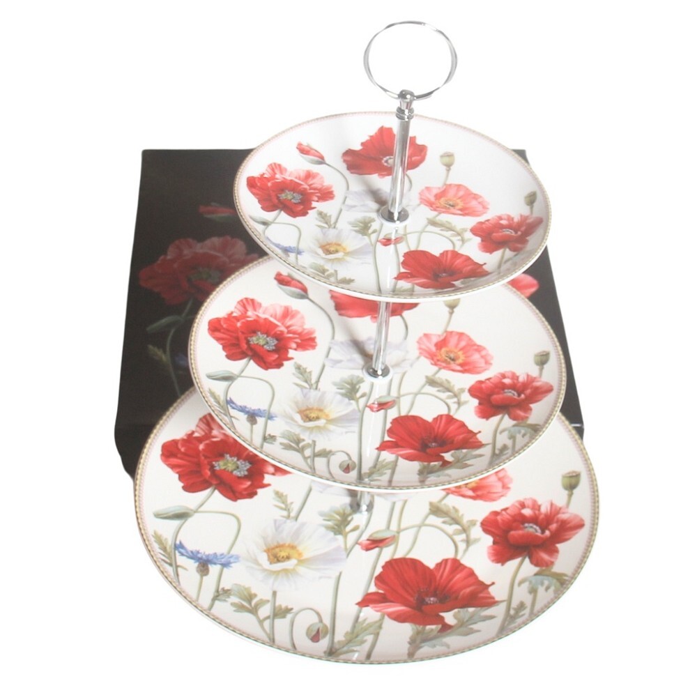 HOME ELEMENTS Stojan na dezerty třístupňový, Máky bílé