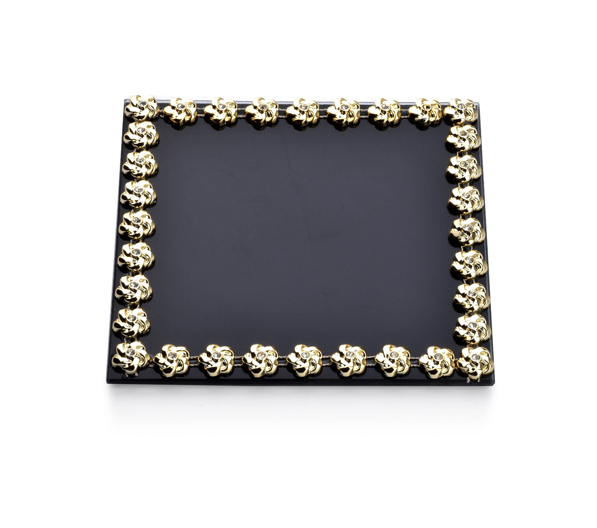 Podstawka dekoracyjna z serii ELIA marki MONDEX. Wykonana z lustra i elementów ozdobnych. Świetnie się sprawdzi jako baza do dekoracji stołu. Idealnie nadaje się do trzymania na niej świec. Bogate zdobienia sprawiają, że nada wyrazu każdemu wnętrzu. WYMIARY:DŁUGOŚĆ: 15CMSZEROKOŚĆ:15CMWYSOKOŚĆ:1CM OPAKOWANIE BIAŁY KARTON 16x16xh2cm