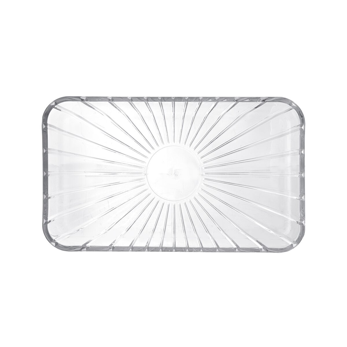 Servírovací tác spojuje estetiku a funkčnost a je ideálním pomocníkem do každé kuchyně. Využijete ho pro servírování chlebíčků, cukroví, pečiva, sušenek, sushi, sýrů, uzeniny, zeleniny... Snadno se čistí a je vhodný pro každodenní použití. Plastický dekor. Materiál: sklo. Rozměry: 27,6x16,2x2,2 cm. Je vhodný do myčky.