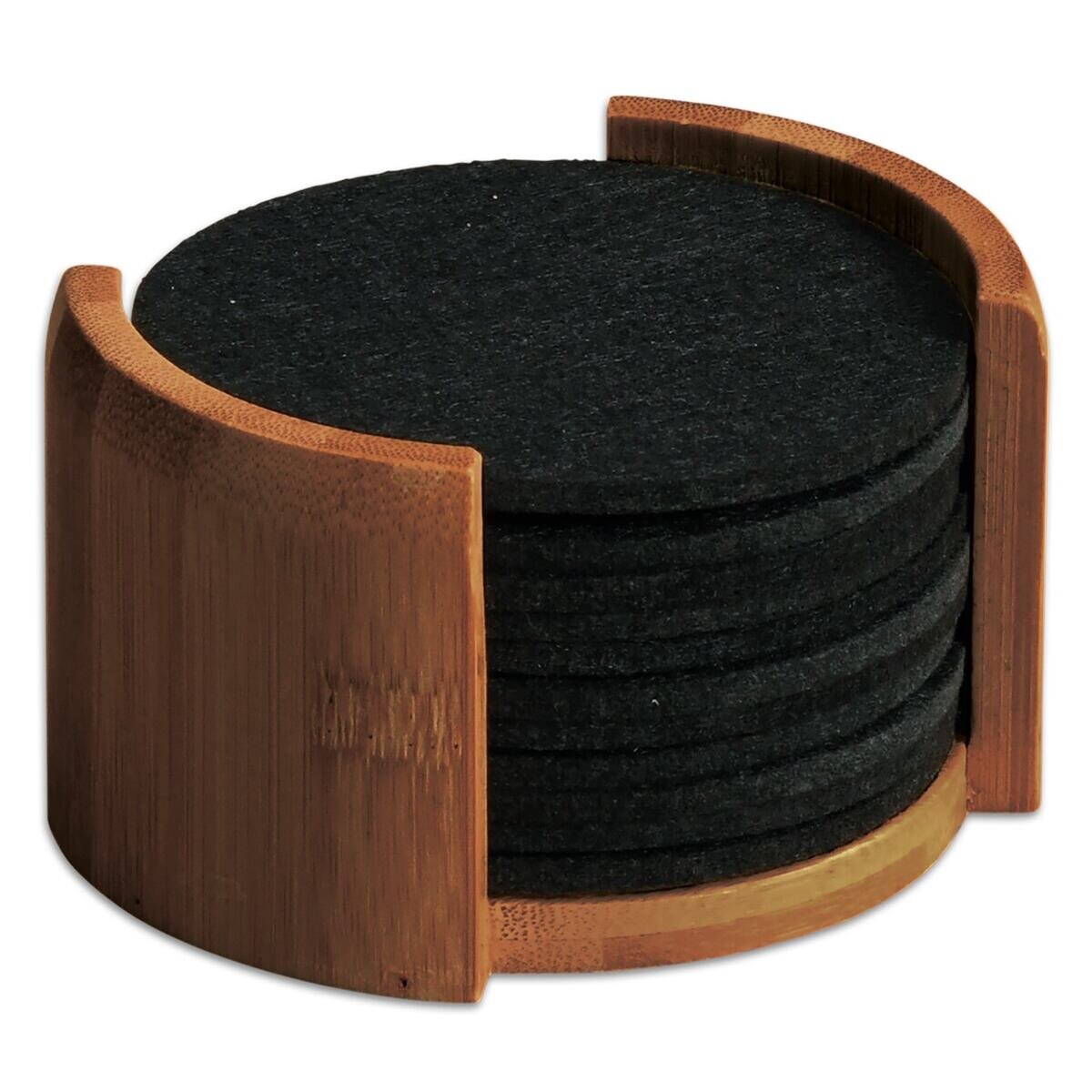 Podtácky 12 ks, Ø 10 cm, bambus/plsť, černé KESPER 59747