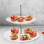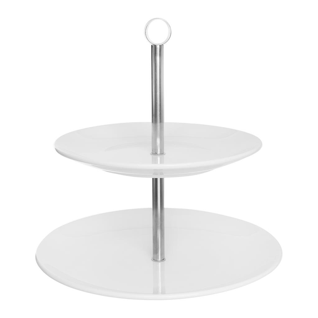 Stojan 2 patrový kulatý na servírování zákusků, cukroví, ovoce, jednohubek, chlebíčků. Materiál: porcelán, slitina zinku. Vhodný do myčky. Rozměry: pr. 20,5 a 25,5 cm, v. 25 cm. prečítať celé