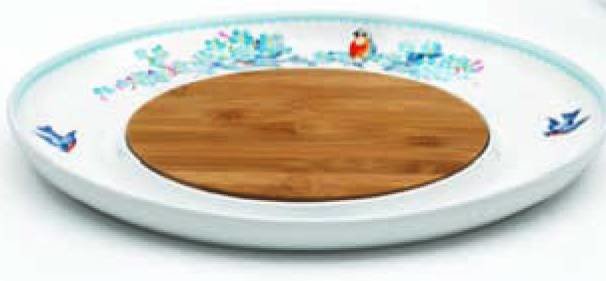 Keramický talíř s růžovým ozdobným dekorem na okrajích a dřevěným středem pro jednoduché porcování sýra. Servírovací talíř je odolný, dobře omyvatelný. prečítať celé