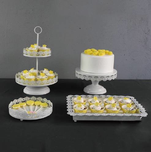 Servírovací sada obsahuje 4 ks stojanů na dorty. prečítať celé