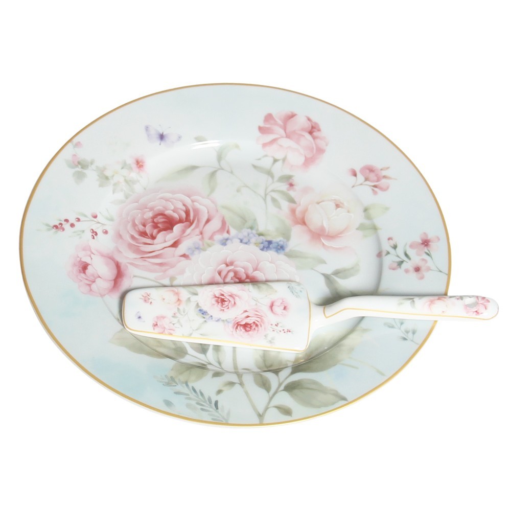 HOME ELEMENTS Talíř kulatý s lžící na dort, Růže