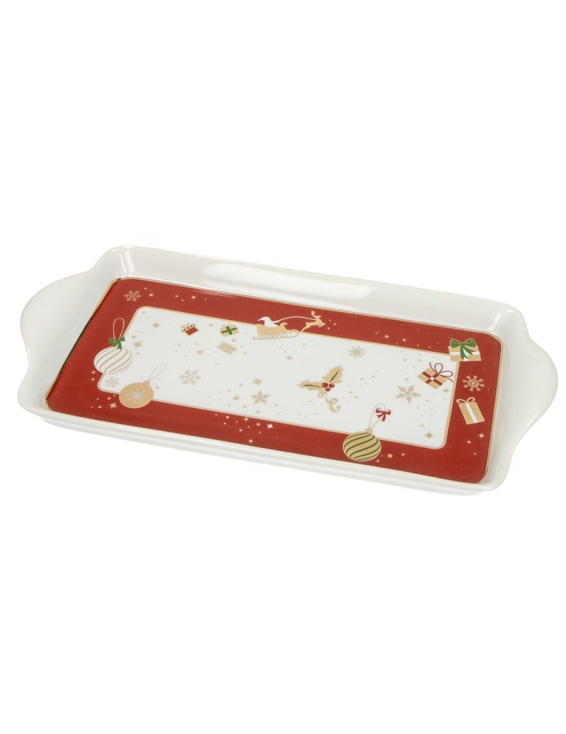 Tác z porcelánu v bílé/červené/zlaté barvě s vánočním vzorem. Ozdobí váš slavnostní stůl na Vánoce.Rozměry: 35,5x17,5 cm Italský design plný elegance a originality, to je Brandani, italský výrobce designového nábytku a bytových doplňků. Designéři se snaží o to, aby každý navržený výrobek byl...