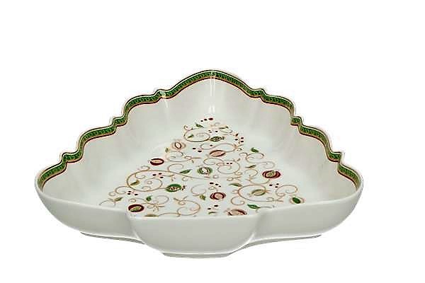 Tác v bílé/červené/zelená barvě ve tvaru vánočního stromečku.